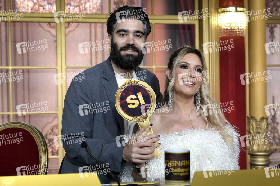 Lorenzo Biagiarelli und Selvaggia Lucarelli in der 1. Episode der Rai Tanzshow 'Ballando con le stelle 2025' im Auditorium Rai Foro Italico. Rom, 09.05.2025