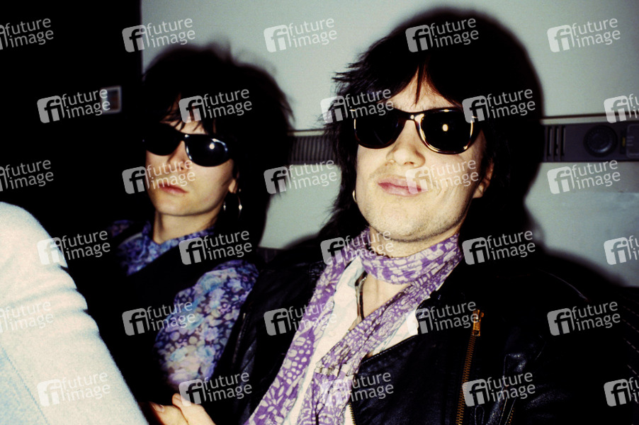 Danny Nordhal und Roger Ericson von The Throbs bei einem Photoshooting in einem Hotel. London, 05.04.1991