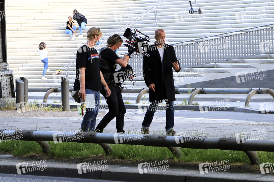 Heino Ferch bei den Dreharbeiten zum ARD TV-Film 'Blöd gelaufen - Danke für den Abschied' an den Landungsbrücken. Hamburg, 16.06.2020