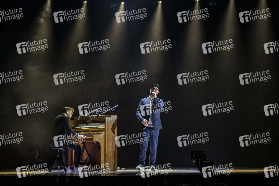 Daniel Nitt und Mark Forster bei der Aufzeichnung der TV-Show 'MDR Sputnik präsentiert: Friends of Mark Forster' im Carl-Maria-von-Weber-Theater. Bernburg, 07.12.2021