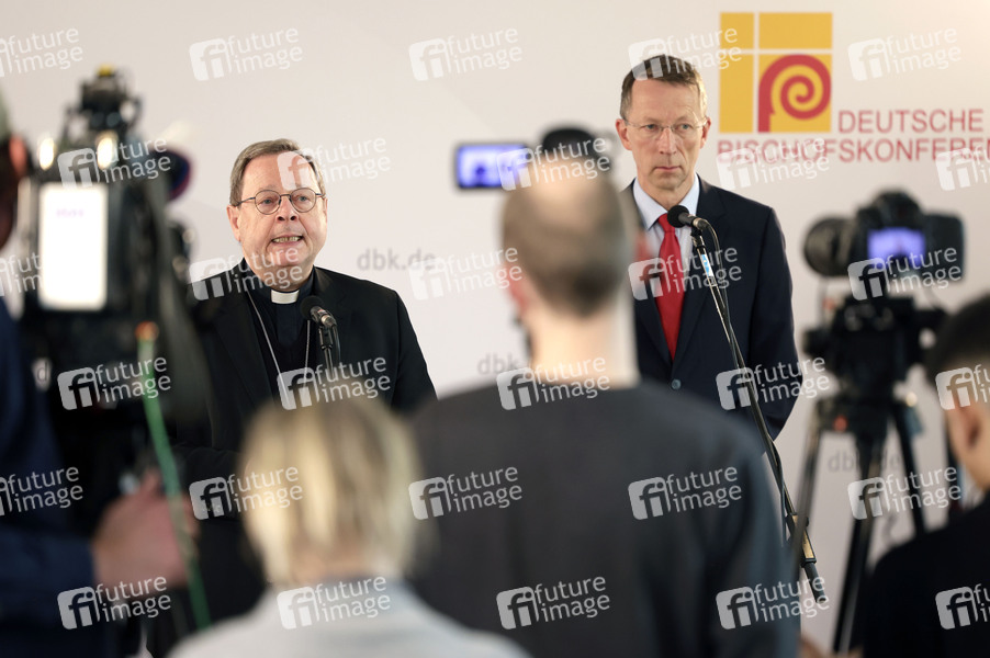 Georg Bätzing und Matthias Kopp bei der Pressekonferenz zur Frühjahrs-Vollversammlung der Deutschen Bischofskonferenz im Kloster Steinfeld. Kall-Steinfeld, 10.03.2025