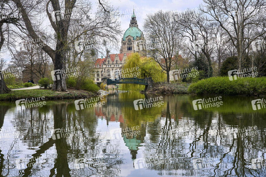 Das Neue Rathaus mit Maschteich am Maschpark. Hannover, 18.04.2021