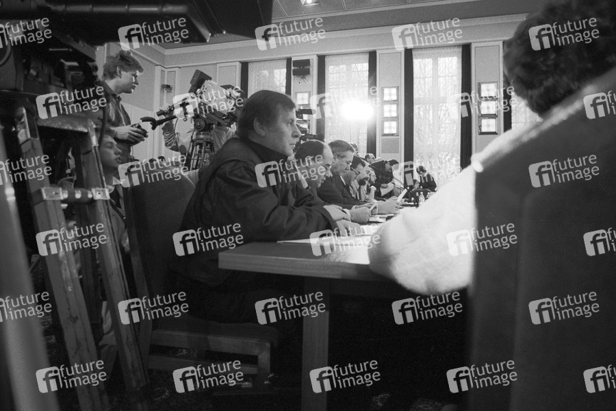 Lothar Bisky, Gregor Gysi, Wolfgang Schnur - nach dem Zusammnebruch der DDR versammeln sich Reformer um die Möglichkeiten eines Neuanfangs zu diskutieren zum sogenannten Runden Tisch im Schloss Niederschönhausen. Berlin, 06.01.1990