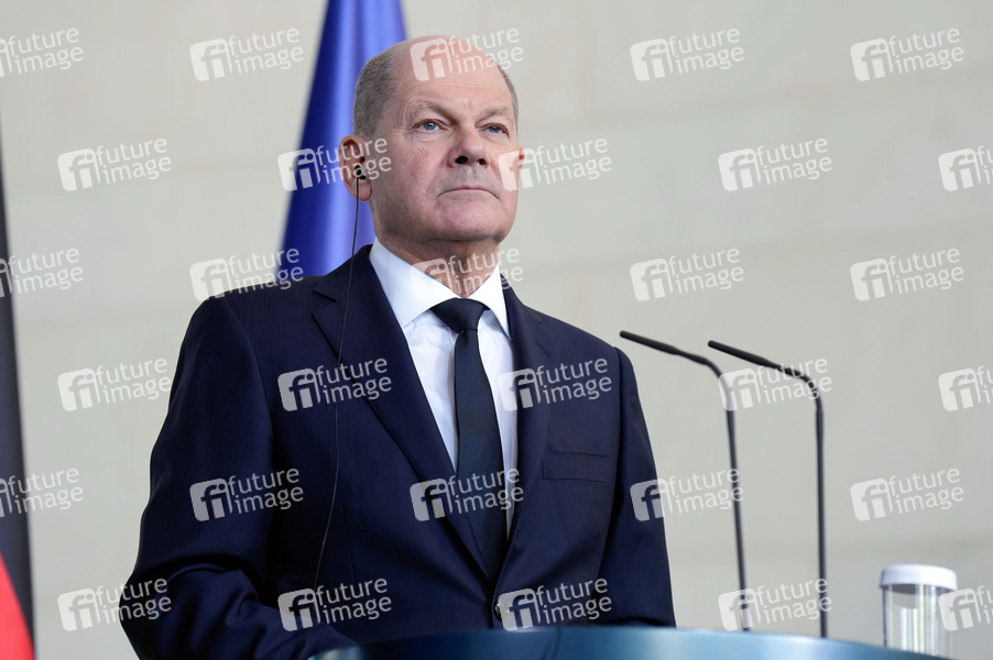 Politik, Staatsbesuch, Staatsvisite, Gespräch, bilaterale Gespräche, Treffen, Diplomatie, Staatsgast Kanzleramt, Ehrenhof, Pressekonferenz, Pressestatement, Unterstützung, Krieg, Politiker, Bundeskanzler, SPD