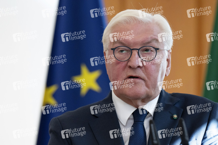 Frank-Walter Steinmeier beim Empfang des italienischen Staatspräsidenten mit militärischen Ehren im Schloss Bellevue. Berlin, 27.09.2024