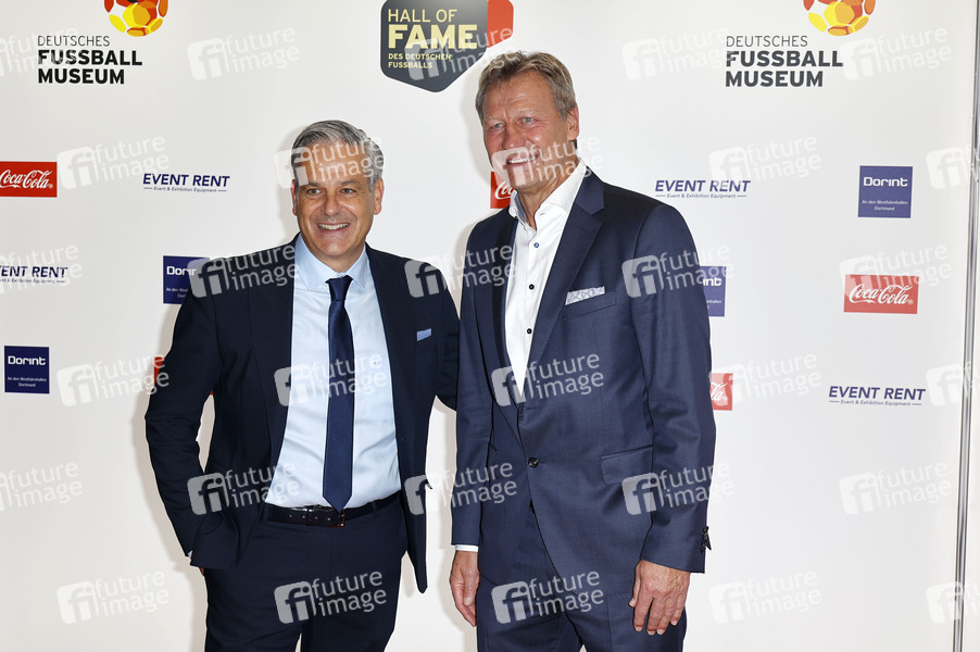 Manuel Neukirchner und Guido Buchwald bei der Hall of Fame Preisverleihung 2025 im Deutschen Fußballmuseum. Dortmund, 06.10.2025
