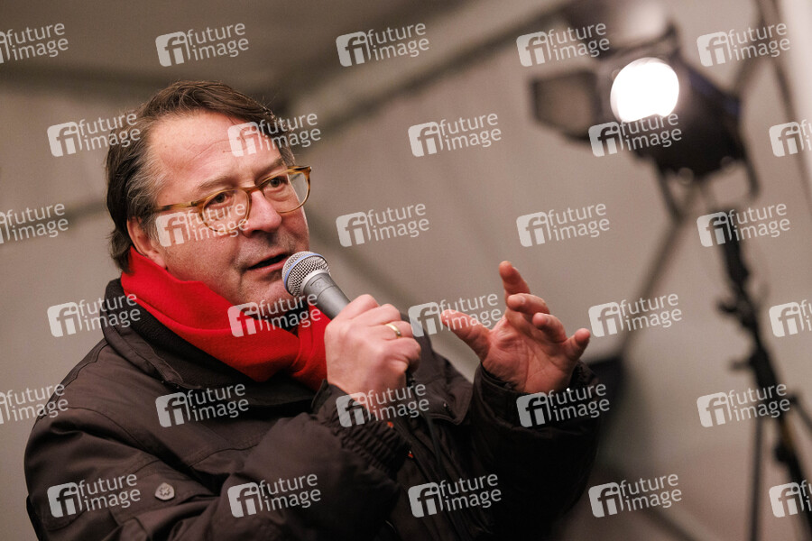 Hans Mörtter bei der Solidaritätsaktion mit Obdachlosen am Kölner Hauptbahnhof. Die Vereine 'Helping Hands' und die Sozialistische Selbsthilfe Mülheim (SSM) haben unterstützt von der Initiative 'Arsch Huh' am Wochenende dazu eingeladen, in einer Solidaritätsaktion drei Nächte am Hauptbahnhof zu übernachten. Köln, 03.12.2021