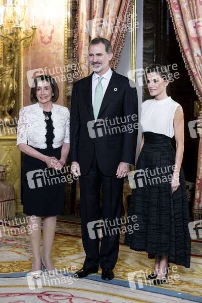 Nancy Pelosi, König Felipe von Spanien und Königin Letizia von Spanien bei einem Empfang anlässlich der UN-Klimakonferenz 2019 im Palacio Real. Madrid, 02.12.2019