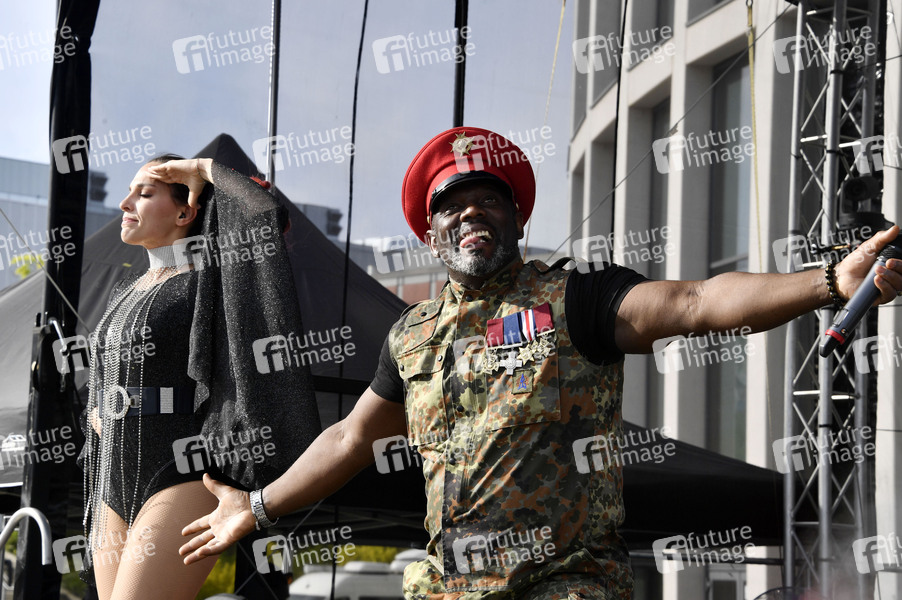 Michelle Stanley und Bruce Lacy von Captain Jack live beim 90er Drive-In-Konzert von rbb 88.8 auf dem Messegelände. Berlin, 21.05.2020