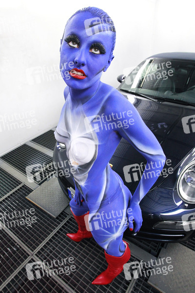 Werbefotos mit Model Caro für die Firma Autotechnik Heinz Müller in Elsdorf im Auftrag der Zoom Werbeagentur Bergheim. Bodypaint Künstler: Jörg Düsterwald