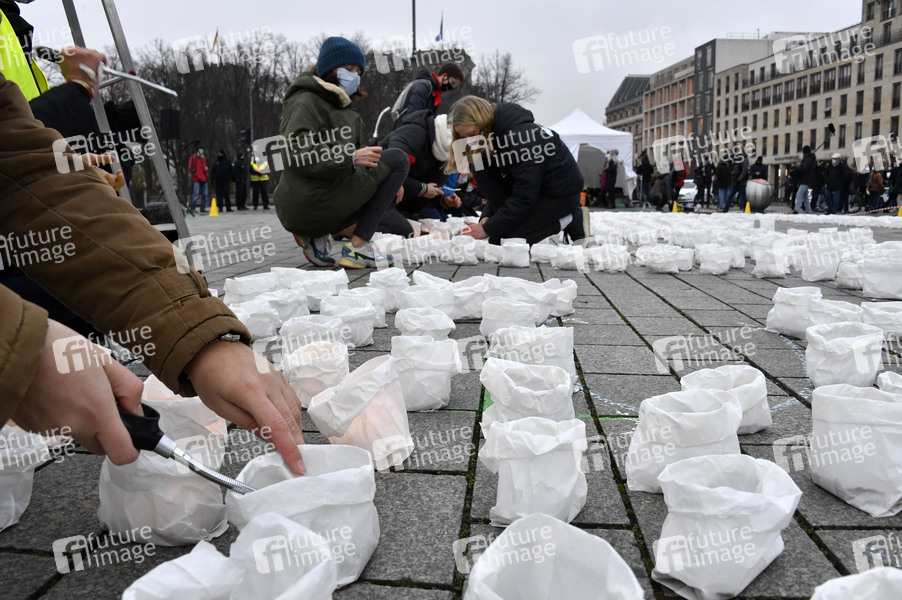 Fridays for Future Lichteraktion unter dem Motto FightFor1Point5 am Brandenburger Tor. Berlin, 11.12.2020