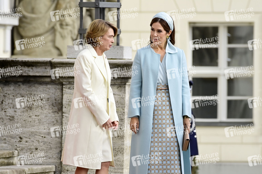 Elke Büdenbender und Königin Mary von Dänemark beim Empfang des dänischen Königspaars mit militärischen Ehren im Schloss Bellevue. Berlin, 21.10.2024