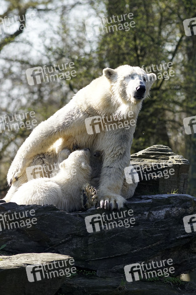 Eisbärin Hertha und Mutter Tonja bei ihrem ersten Ausflug nach der Namensgebung im Tierpark Berlin. Berlin, 02.04.2019