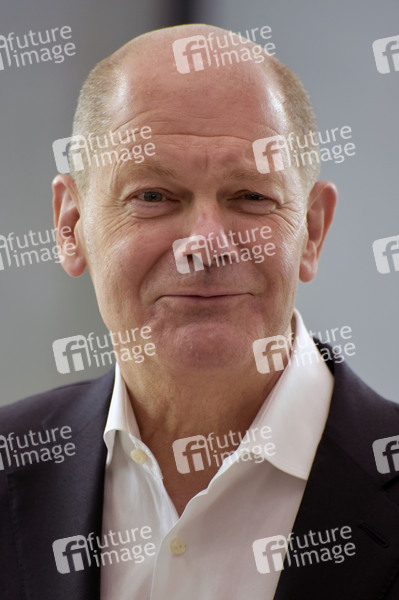 Olaf Scholz bei einem Statement nach einem Unternehmensbesuch bei der Merk KGaA im Innovation Center. Darmstadt, 26.08.2021