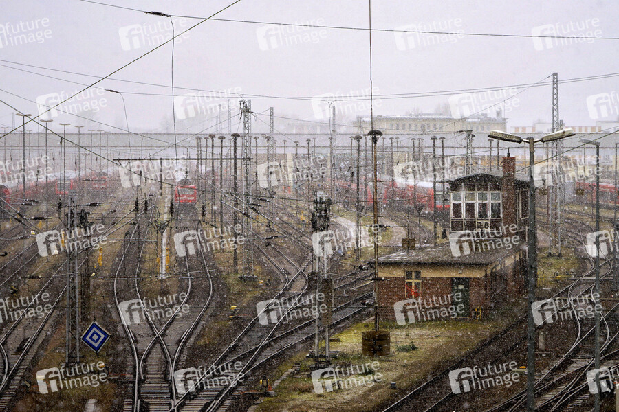 Schneeregen am Bahnhof Lichtenberg. Berlin, 30.03.2020
