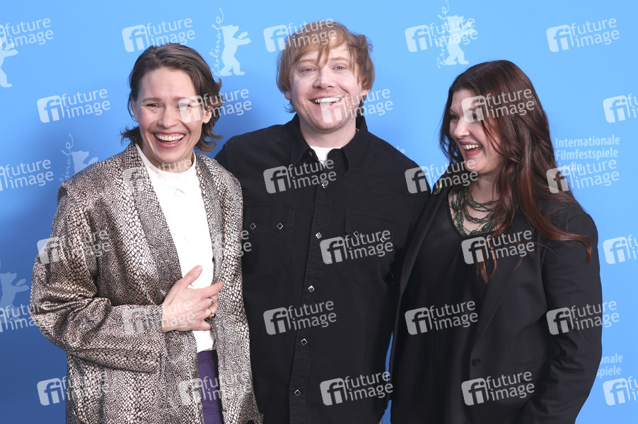 Seidi Haarla, Rupert Grint und Hanna Bergholm beim Photocall zum Kinofilm 'Yön lapsi / Nightborn' auf der Berlinale 2026 / 76. Internationale Filmfestspiele Berlin im Hotel Grand Hyatt. Berlin, 14.02.2026