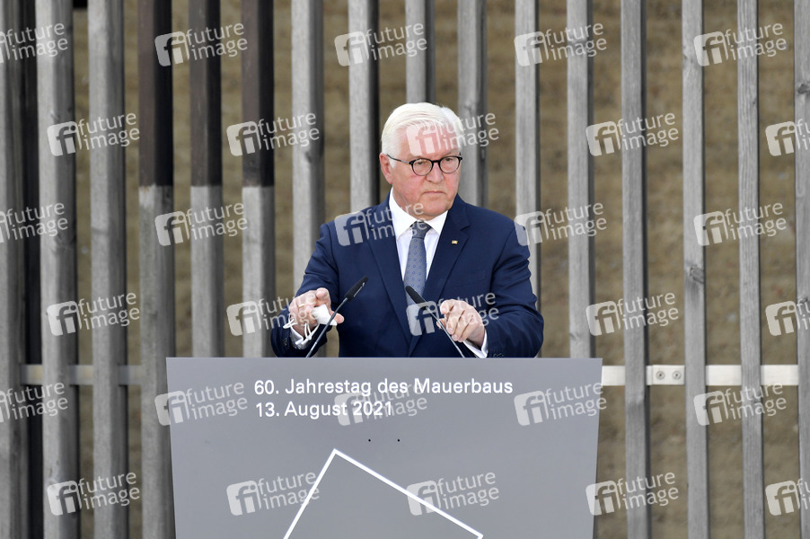Frank-Walter Steinmeier bei der zentralen Gedenkveranstaltung zum 60. Jahrestag des Mauerbaus auf dem Vorplatz der Kapelle der Versöhnung an der Gedenkstätte Berliner Mauer an der Bernauer Straße. Berlin, 13.08.2021