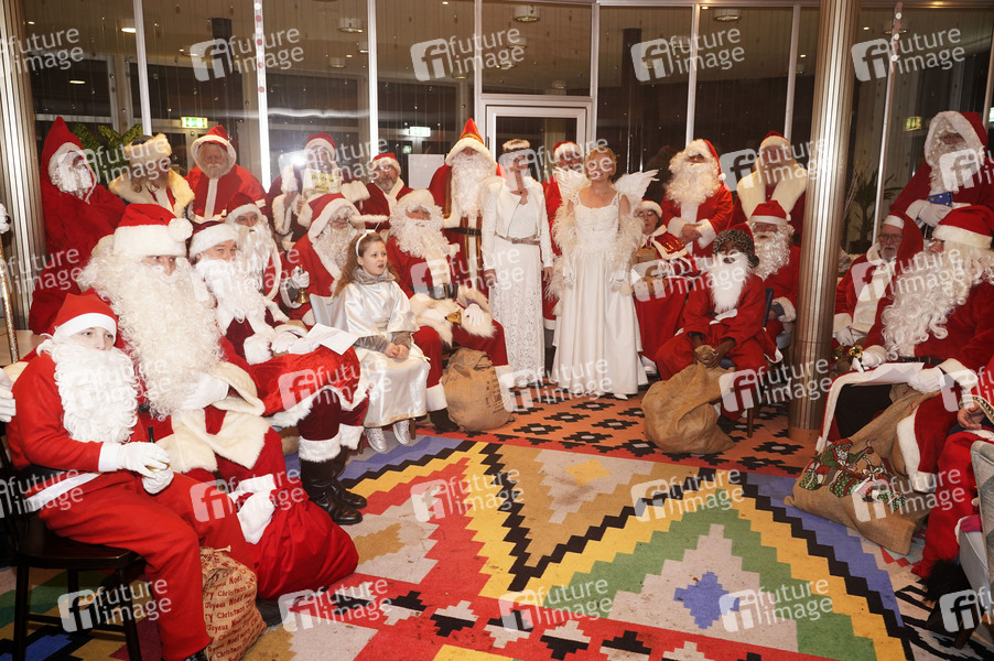35 Weihnachtsmänner und Engel bei der Weihnachtsmannvollversammlung der Berliner Weihnachtsmannzentrale bei 'Weihnachten im Tierpark' im Tierpark. Berlin, 01.12.2019