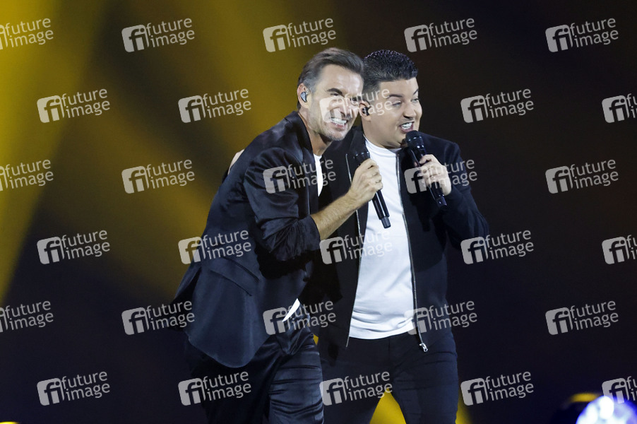 Florian Silbereisen und Marco Schuitmaker in der TV Show 'Schlagerbooom 2025 - Alles funkelt! Alles glitzert!' in der Dortmunder Westfalenhalle. Dortmund, 18.10.2025