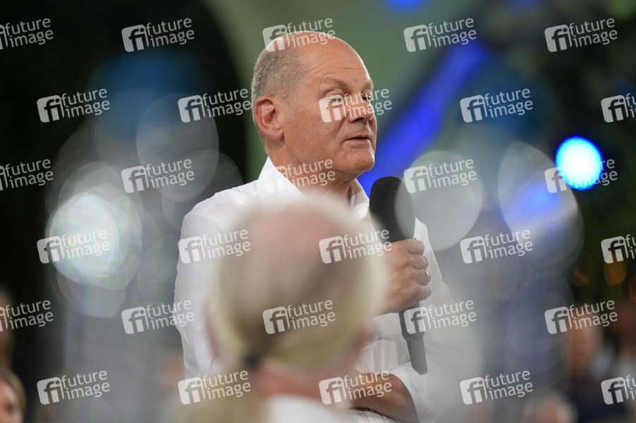 Olaf Scholz beim Kanzlergespräch mit Bürgern in der ufaFabrik. Berlin, 04.09.2024