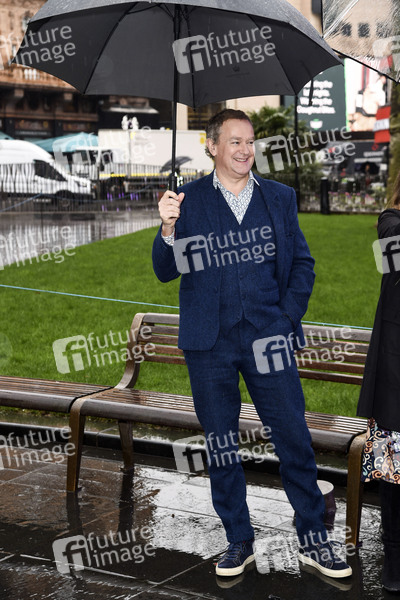 Hugh Bonneville mit Paddington Bär Statue beim Launch des 'Scenes in the Square' Statuen-Weges mit acht ikonischen Filmszenen von 1920-2020 am Leicester Square. London, 27.02.2020