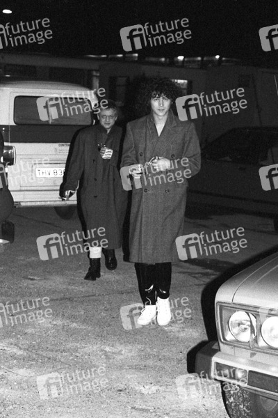 Udo Dirkschneider und Peter Baltes von Accept bei den Musikvideo-Dreharbeiten zum Song 'Balls to the Wall' auf einem Abrissgelände in Heathrow. London, 07.02.2017