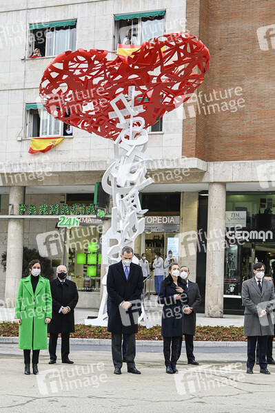 Adel, König von Spanien, Staatsoberhaupt, Fürst von Asturien, Fürst von Girona, Felipe de Borbón, Monarch, Königin von Spanien, Letizia Ortiz Rocasolano, Fürstin von Asturien, Royals, Corona, Sars-CoV-2, Covid-19, Coronavirus, Coronaviren, Corona-Virus, Coronakrise, Corona-Krise, Corona-Pandemie, Ehrung, Denkmal