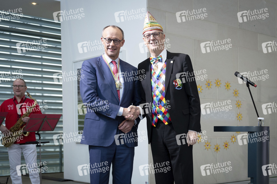 Friedrich Merz und Klaus-Ludwig Fess beim Karnevalsempfang im Bundeskanzleramt. Berlin, 03.02.2026