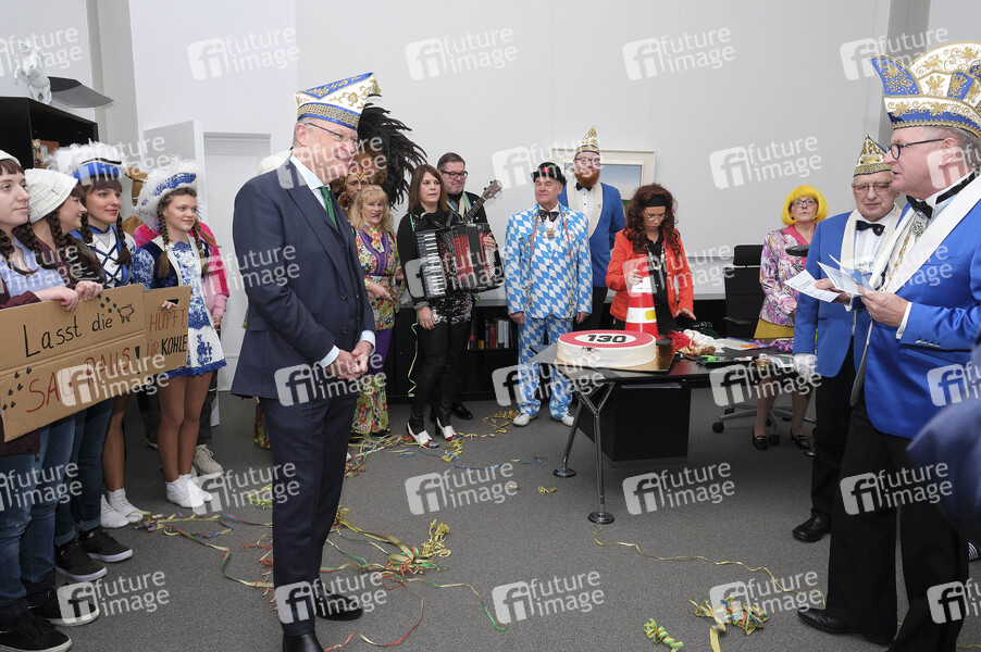 Die Lindener Narren stürmen am Rosenmontag das Büro von Ministerpräsident Stephan Weil in der Niedersächsischen Staatskanzlei. Hannover, 24.02.2020