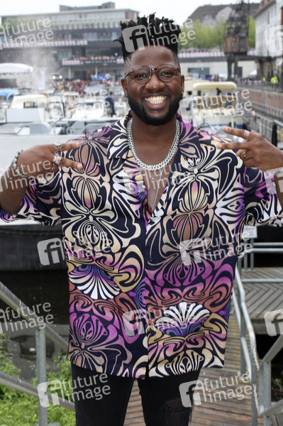 Kelvin Jones bei der Ankunft zur Energy Music Tour auf der schwimmenden Bühne im Tempelhofer Hafen. Berlin, 20.08.2022