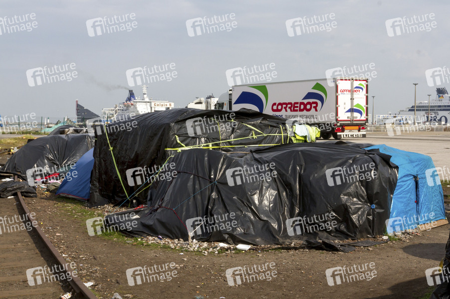 Flüchtlinge erreichen täglich die drei Flüchtlingscamps in Calais. Betroffen sind mehr als 800 Flüchtlinge aus Asien, Nahost und Afrika, die von dort aus nach Großbritannien gelangen wollen. Calais, 26.05.2014