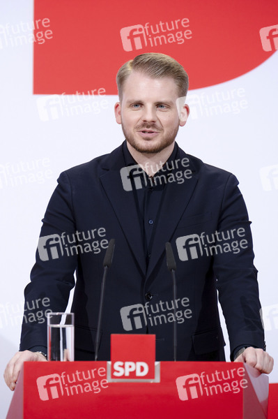 Tim Klüssendorf bei der Pressekonferenz nach der SPD Gremiensitzung im Willy-Brandt-Haus. Berlin, 23.02.2026