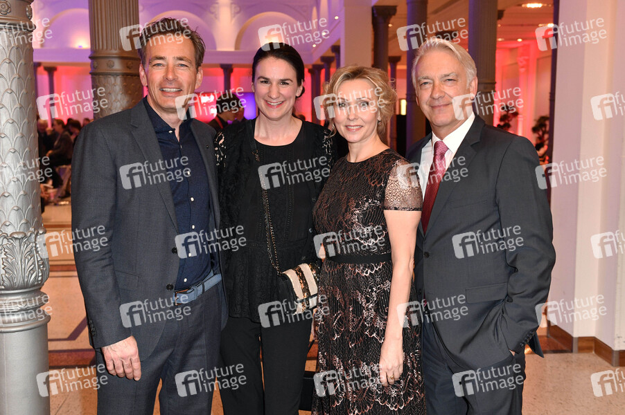 Jan Sosniok mit Ehefrau Nadine und Dana Golombek mit Lebenspartner Christoph M. Ohrt bei der Verleihung des 17. Deutschen Hörfilmpreises 2019 in der Hauptstadtrepräsentanz der Deutschen Telekom. Berlin, 19.03.2019
