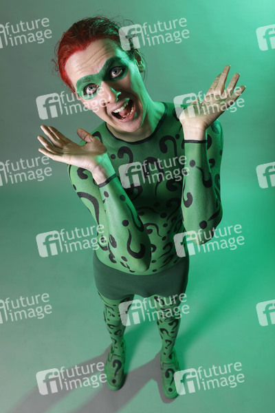 Cosplay, Cosplayer, Bodypainting, Body-Painting, Make-up, Maskenbildnerei, Körperkunst, Körperfarben, Projekt Farbkörper, Farbe, Bemalung, Kunst, Malerei, Comic, DC Comics, Comicfigur, Verbrecher, Psychopath, Batman-Gegner, Edward Nygma, Fragezeichen, Rätzel, body painting, body art, project color body, colors, colours, villain, comic character, criminal, psychopath, Batman opponent, question mark, riddle