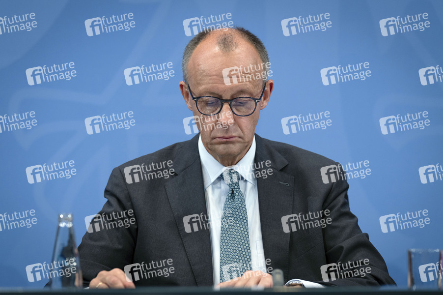 Friedrich Merz bei einer Pressekonferenz nach der Sitzung des Koalitionsausschusses von Union und SPD im Kanzleramt. Berlin, 03.09.2025