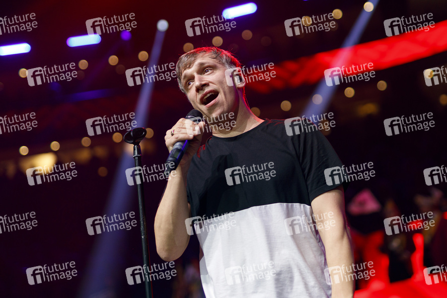 Bastian Campmann von der Band Kasalla bei der Lachenden Kölnarena 2020 in der Lanxess Arena. Köln, 24.01.2020