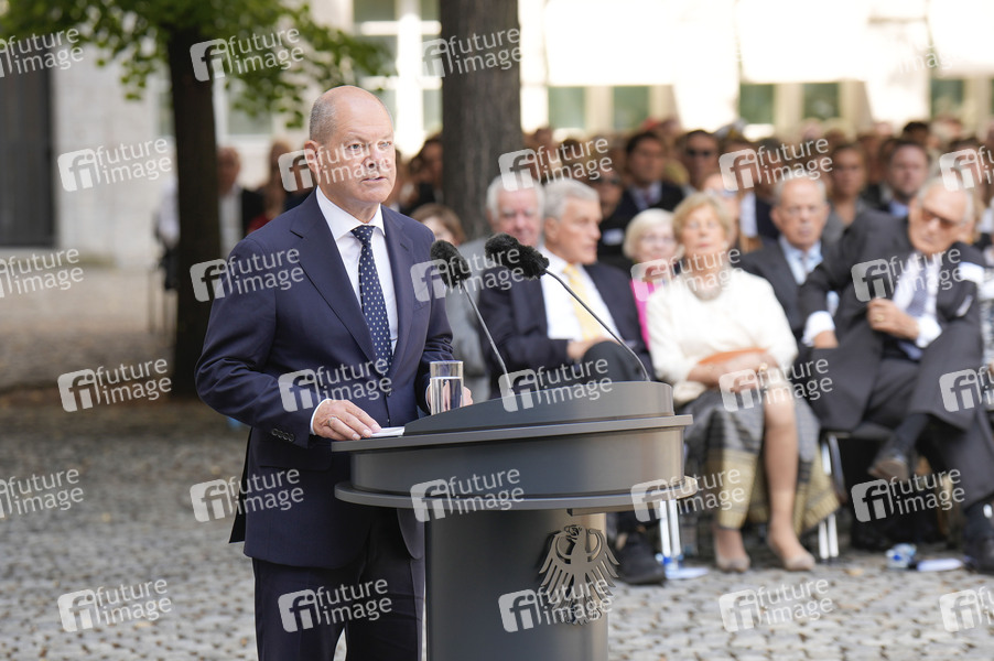 Olaf Scholz bei der Gedenkveranstaltung zum 80. Jahrestag des Aufstands gegen Nationalsozialistische Gewaltherrschaft mit Kranzniederlegung auf dem Ehrenhof des Bendlerblocks.Berlin, 20.07.2024