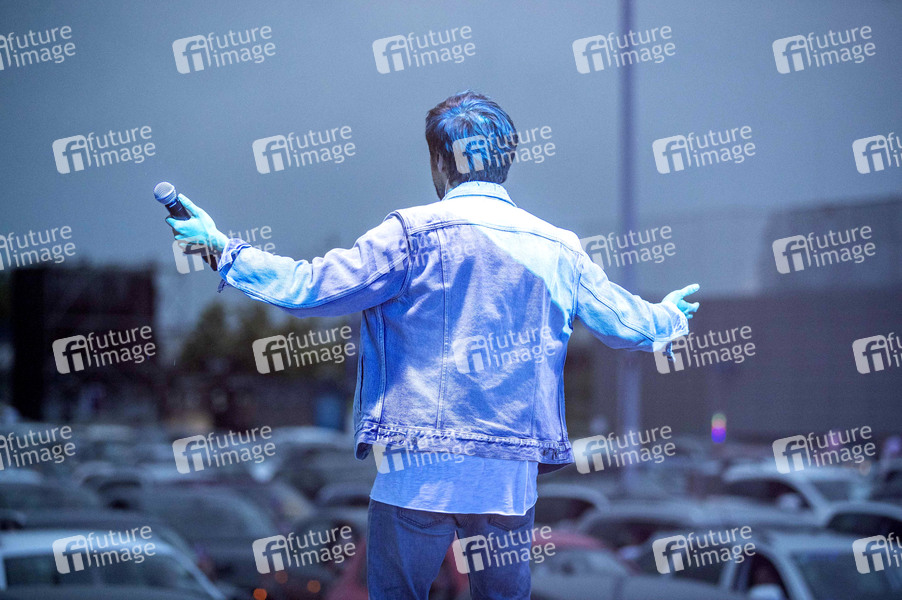 Musiker, Sänger, Pop, Musik, Konzert, Auftritt, Bühne, Stage, live, Unterhaltung, Entertainment, Kultur, Corona, Sars-CoV-2, Covid-19, Coronavirus, Coronakrise, Corona-Krise, Corona-Pandemie, Coronamaßnahmen, Corona-Schutz, Kontaktverbot, Mindestabstand, Social Distancing, Abstand, Abstandhalten, Abstandsregel, Auto, Autokonzertreihe, Autokonzert, Auto-Konzert