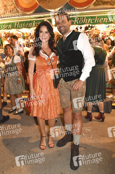 Mariella Ahrens und Marco van Dre beim Almauftrieb in der Käfer Wiesn Schänke auf dem 190. Oktoberfest 2025 auf der Theresienwiese. München, 22.09.2025