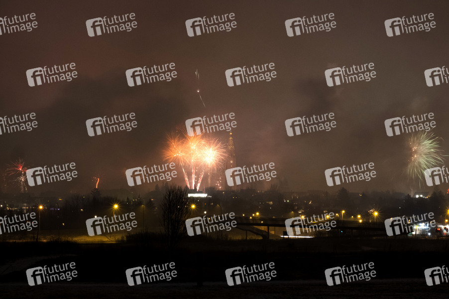 Mit einem Silvesterfeuerwerk über der isländischen Hauptstadt begrüßen die Isländer das neue Jahr. Reykjavik, 01.01.2021