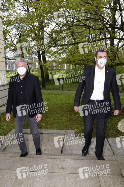 Dieter Reiter und Markus Söder bei der Pressekonferenz zur Absage vom Oktoberfest 2021 und zur diesjährigen Volksfest-Saison in Bayern im Foyer des Prinz-Carl-Palais. München, 03.05.2021
