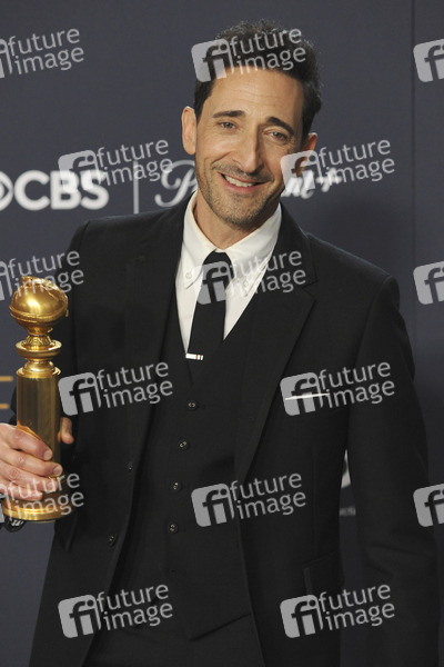 Adrien Brody mit dem Preis für den besten Drama-Hauptdarsteller in 'The Brutalist' bei der Verleihung der 82. Golden Globe Awards 2025 im Beverly Hilton Hotel. Beverly Hills, 05.01.2025