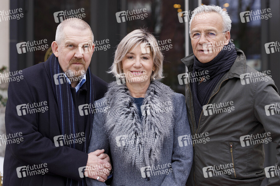 Dietmar Bär, Ulrike Krumbiegel und Klaus J. Behrendt beim Fototermin am Set des 80. Tatorts aus Köln 'Tatort - Der Tod der Anderen' am Hotel Rheinpalais. Köln, 27.11.2019