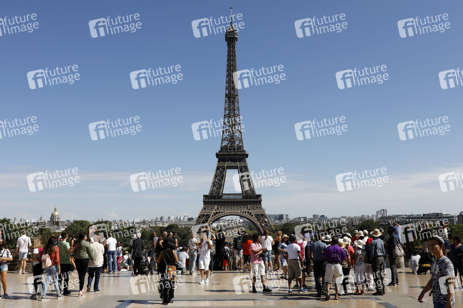 Tourismus, Touristen, Sightseeing, Stadt der Liebe, Wahrzeichen, Eiffelturm, Architektur, Sommer in Paris, Reiseziel, Frankreich, Kultur, Esplanade du Trocadero