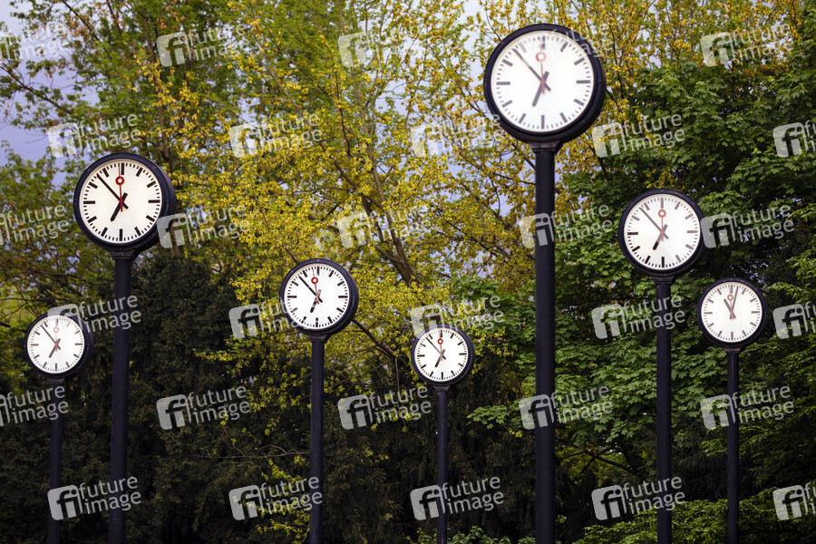 Uhren der Installation 'Zeitfeld' von Klaus Rinke. Düsseldorf, 05.08.2019