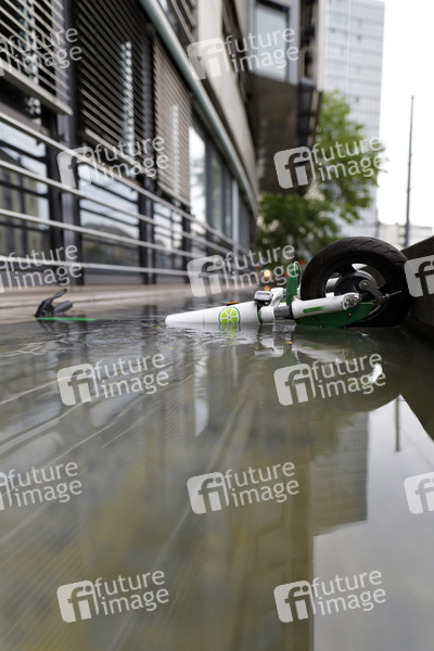 E-Scooter der Firma Lime wurde von Feiernden in einem Wasserbecken entsorgt. Köln, 26.06.2020