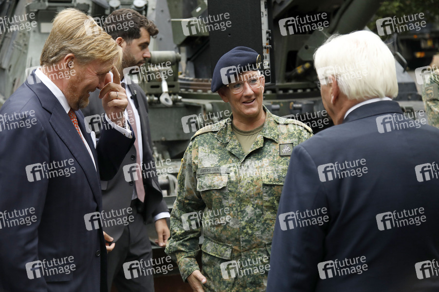 König Willem-Alexander der Niederlande und Frank-Walter Steinmeier beim Treffen mit Soldatinnen und Soldaten anlässlich von 30 Jahre Deutsch-Niederländisches Corps auf dem Gelände des Corps. Münster, 25.09.2025