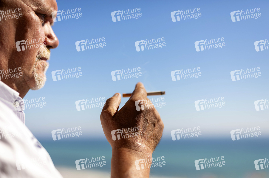 Der Drogenbeauftragte der Bundesregierung, Burkhard Blienert, hat sich für ein entschiedeneres Vorgehen gegen Tabakkonsum ausgesprochen. Er könnte sich ein Rauchverbot wie in Großbritannien vorstellen. Im Bild ein Raucher am Strand. (Symbolfoto, Symbolbild, Modelrelease) Grömitz, 17.04.2024
