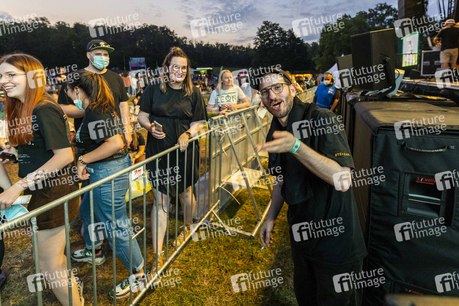 Jakob Amr von den Leoniden live beim Picknick Konzert auf der Zoopark Festwiese. Erfurt, 10.07.2021