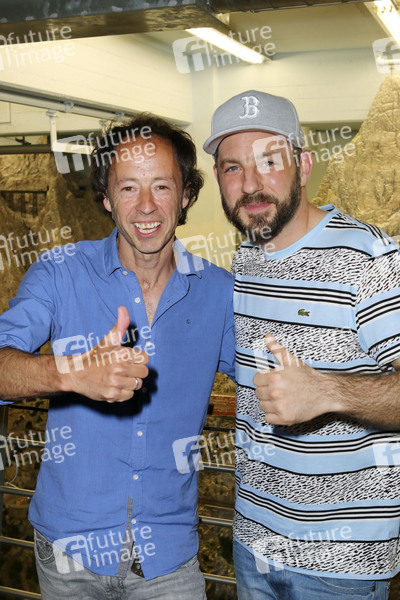 Gerrit Braun und Das Bo bei der Präsentation des offiziellen Musikvideos von Das Bo zur Fussball WM mit einem Liveauftritt im Modell von der Schweiz im Miniaturwunderland. Hamburg, 27.05.2014